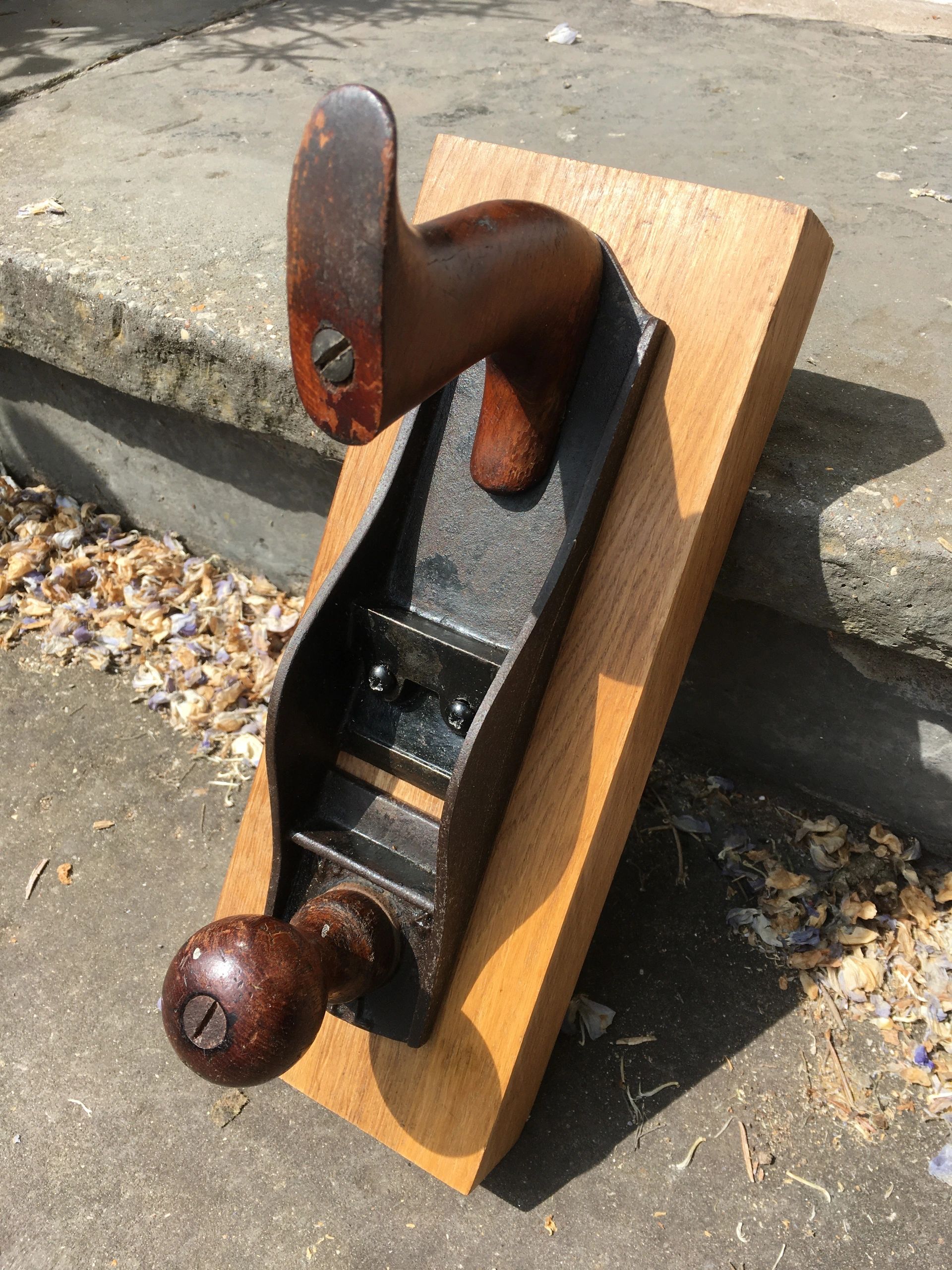 Reclaimed oak base with body of an old wood plane, finished in beeswax.