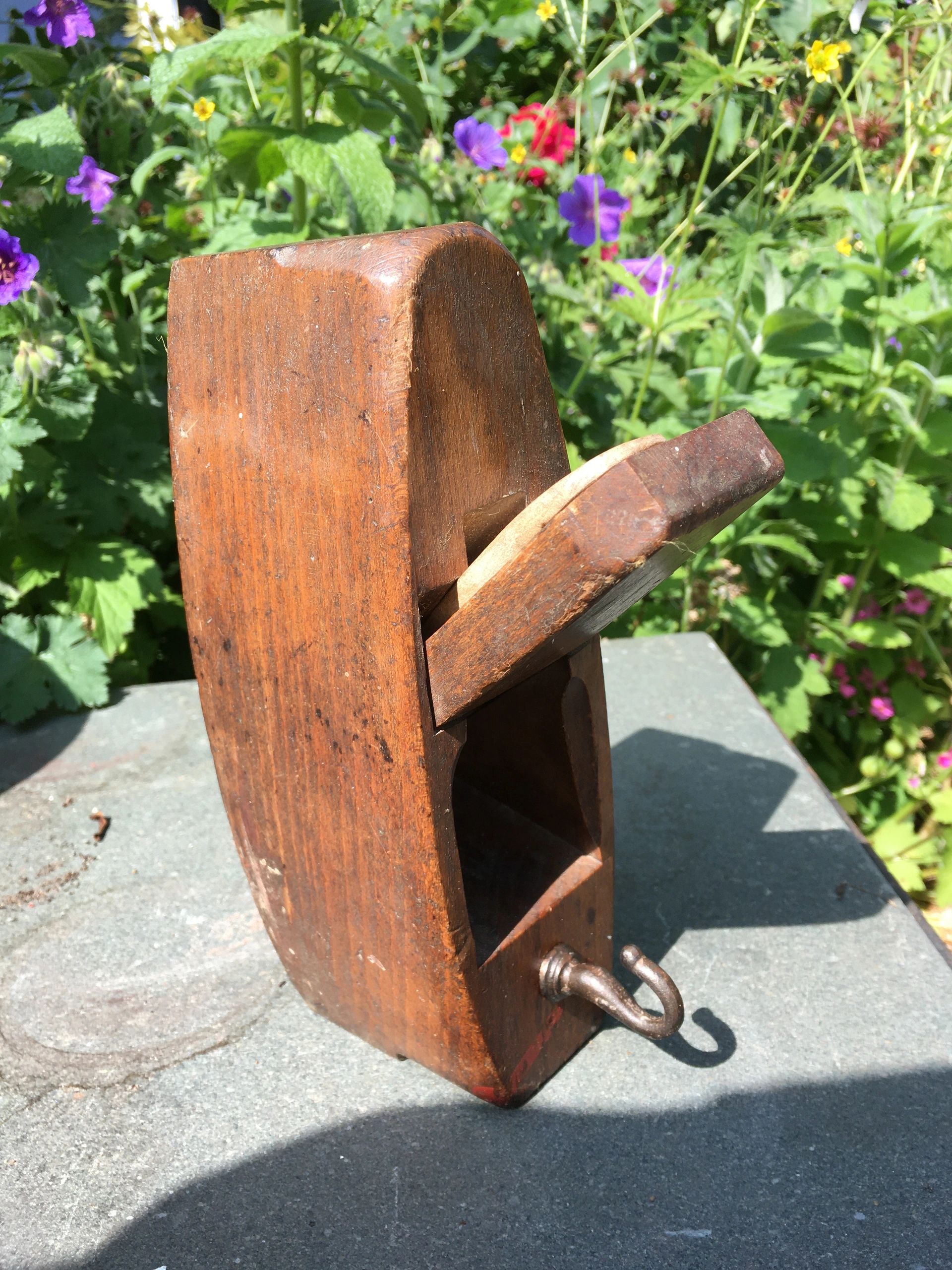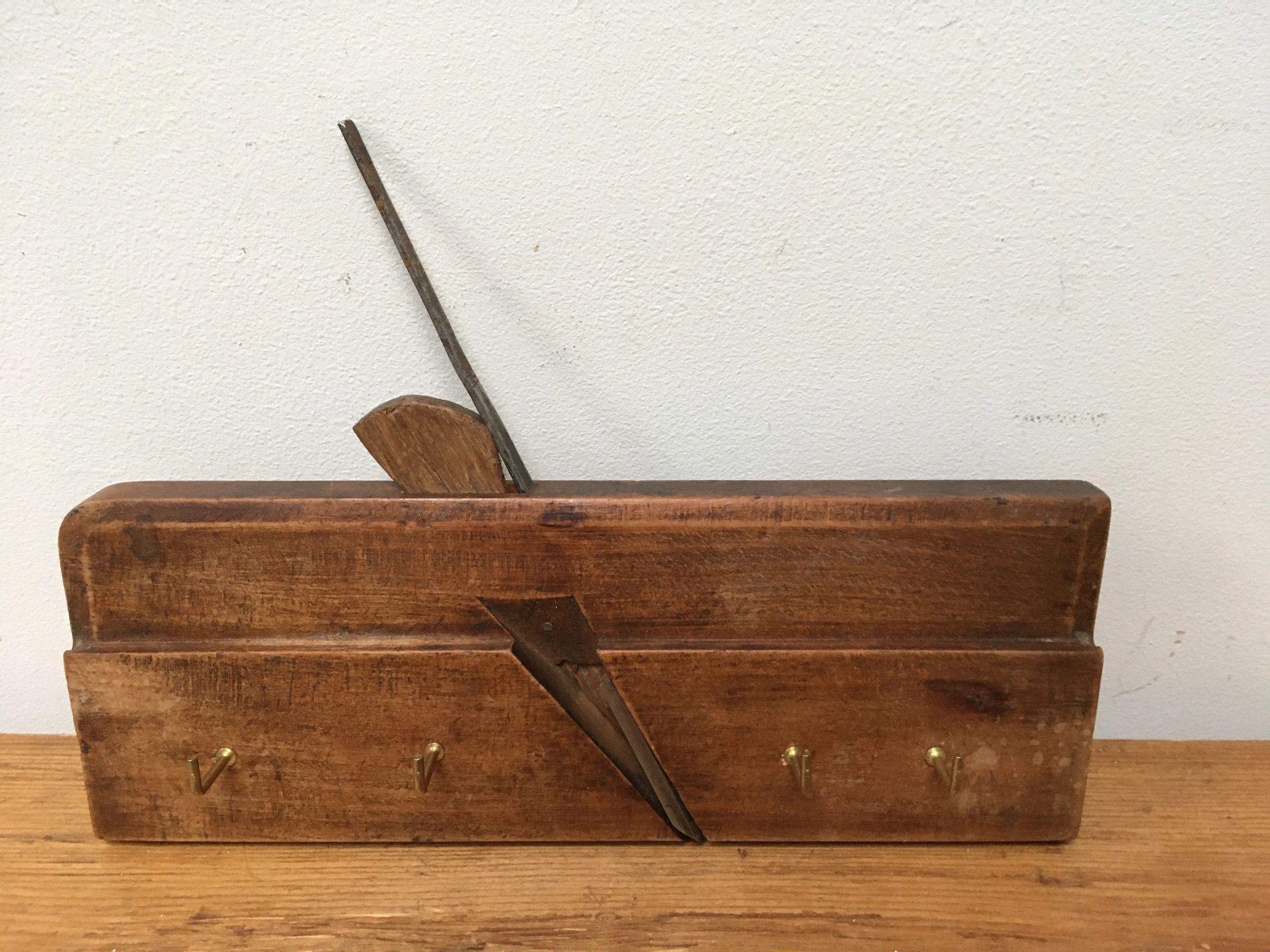 Small wooden vintage wood working plane, wall hanging wiht mounting plates on back.