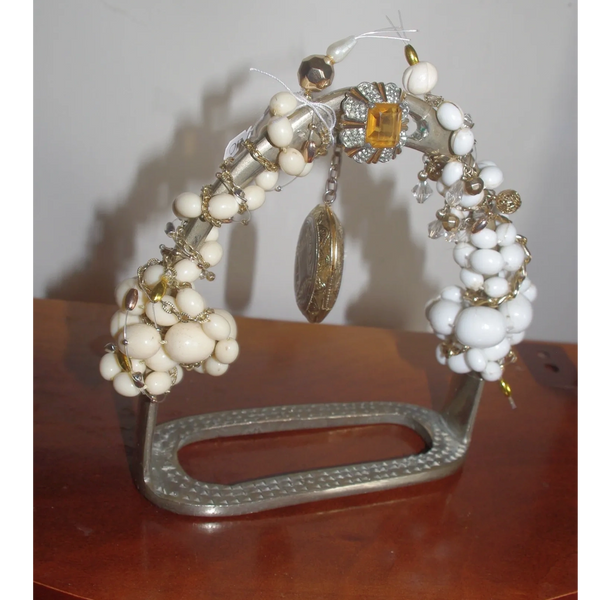 Beaded stirrup using unwanted costume jewellery and locket SOLD
