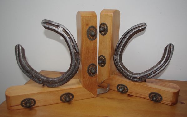 Old horse shoes cleaned , welded into animals or decorated with beads from broken costume jewellery, or turned to more practical use as wine bottle holders, shelf supports, decorative bookends.